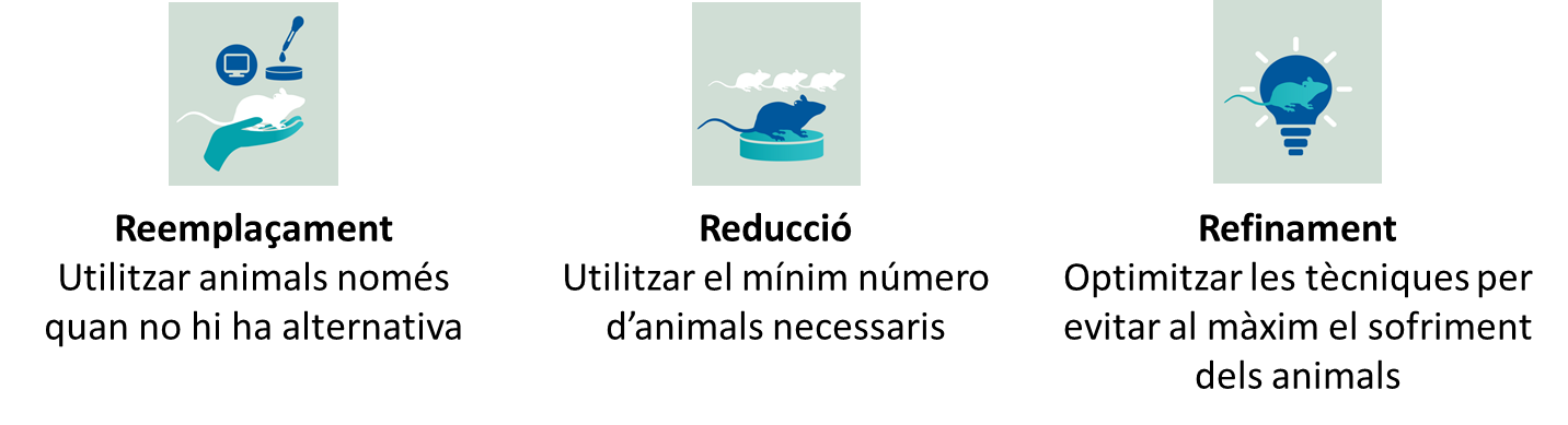 Per tant, els projectes de recerca cal que siguin dissenyats i revisats escrupolosament per a adequar-se a aquestes 3R, des dels mateixos investigadors quan planifiquin la seva recerca fins a la revisió/esmena per part dels Comitès Ètics d'Experimentació Animal dels Centres de Recerca i com per part dels organismes de l'Administració competents en aprovar o denegar els procediments.