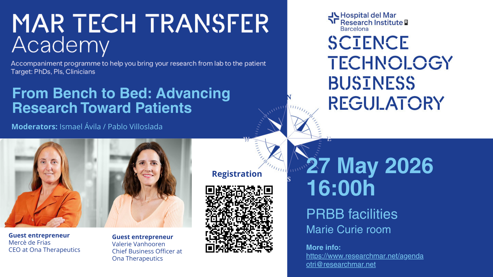 27/05/2026: How to bring your research from Bench to Bed: "Clinical Translation in Action" (Clinical and Regulatory pillar). Marie Curie Room