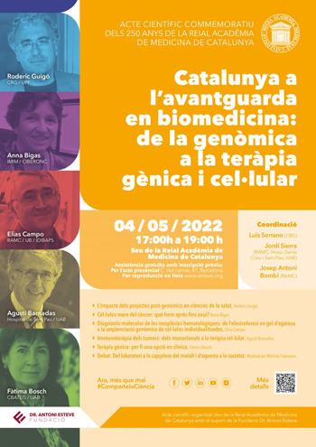 Catalunya disposa d'investigadors de prestigi internacional i centres de recerca biomèdica que són referència mundial. Es lideren projectes d'investigació que abasten des del treball del laboratori fins a la seva aplicabilitat clínica per tal de cobrir les necessitats dels malalts. És per això que alguns dels màxims representants de la recerca biomèdica catalana es donaran cita el pròxim 4 de maig de 2022 de 17 a 19 hores en un acte que organitza la Fundació Dr. Antoni Esteve a la Reial Acadèmia de Medicina de Catalunya que commemorarà els 250 anys d'aquesta institució històrica.