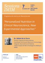 Sessió organitzada pel Programa de Recerca en Neurociències i que anirà a càrrec del Dr. Rafael de la Torre,Director Programa de Neurociències iCoordinador del Grup de Recerca en Farmacologia Integrada i Neurociència de Sistemes de l'Institut Hospital del Mar d’Investigacions Mèdiques (IMIM).