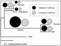 El grup de recerca en Genòmica Evolutiva del IMIM-UPF ha descrit per primera vegada que les insercions d’un o més nucleòtids en l’ADN són, en la majoria dels genomes de mamífers, tant freqüents com les deleccions (o pèrdua d’un fragment de ADN), en contra del que es pensava fins ara. L’estudi s’ha basat en un nou algoritme, anomenat Prank-F, que millora la detecció d’insercions.