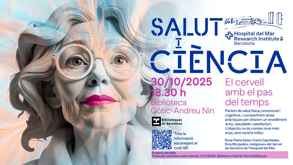 En el marc del Projecte Salut i Ciència en col·laboració amb les biblioteques de Barcelona, us convidem el proper dia 30 d’octubre a la xerrada “El cervell amb el pas del temps” a càrrec de Rosa Paola Salas, Carla Capellades i Enia Morgades, metgesses del Servei de Geriatria del Hospital del Mar.
