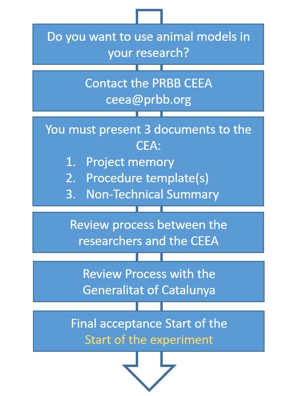 Before beginning any animal experimentation, it is important to first contact the PRBB's Ethics Committee on Animal Experimentation (EECA). The committee will initiate the review process and assess whether the use of animals is justified, as well as determine whether the experimental procedures need to be modified or are adequate.